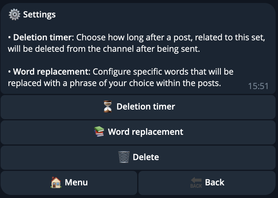 With this feature, you can decide how long after posting a message should be automatically deleted from the channel.
