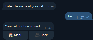 After pressing the "Buttons" button we arrive in the menu where the bot asks for the buttons to be set. We send the buttons to be set and confirm the changes.