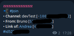 By activating the events in the menu, the bot will log them by sending the event-related information to the secondary channel. For example, by activating the first event, the bot will send a message with the information of each user who joins the channel: