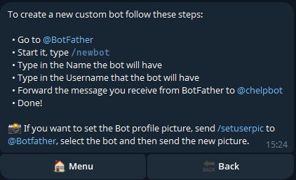 Then follow the steps provided by the bot to complete the setup: