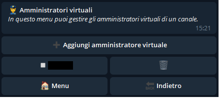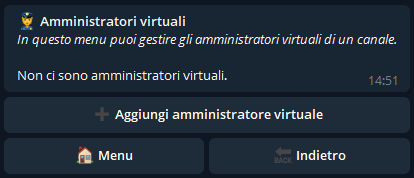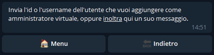 Rechiamoci nel menu "Utenti" del bot e premiamo su "Amministratori virtuali".