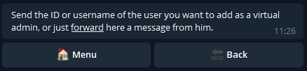Para fazer isso, você pode enviar o nome de usuário ou o ID. Caso contrário, basta encaminhar para o bot qualquer mensagem enviada pelo usuário que desejamos promover.