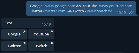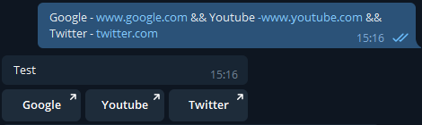 您可以创建多个按钮(任何类型),将它们一起添加到帖子的末尾。 要在同一行创建多个按钮(例如带有链接的按钮),必须发送 && 字符作为分隔符: