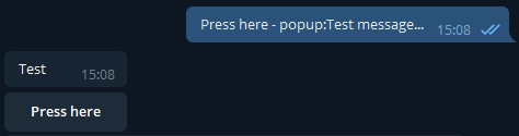 使用弹出按钮,您可以为已订阅和未订阅您频道的用户显示不同的文本。 要做到这一点,向机器人发送如下结构的短语: 按钮文本 - popup:已订阅用户的文本 %% 未订阅用户的文本