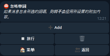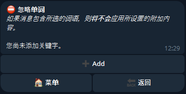 如果频道中发送的消息包含其中一个或多个词语,则不会应用该集合的附加内容。
