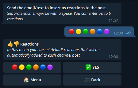 然后,您可以通过按左侧的按钮来自定义它们,并通过空格分隔我们希望设置的反应(最多六个)。