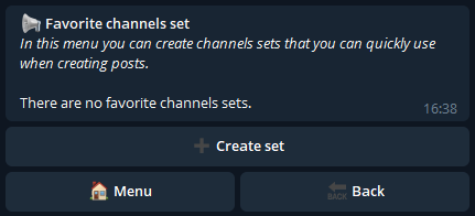 收藏频道集允许您创建一个频道集,随后可以用来发送每个通过“创建帖子”功能创建的帖子。