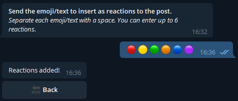 此外,通过按左侧按钮,可以自定义每个反应,发送文本或表情符号,并用空格分隔它们(最多六个反应)。