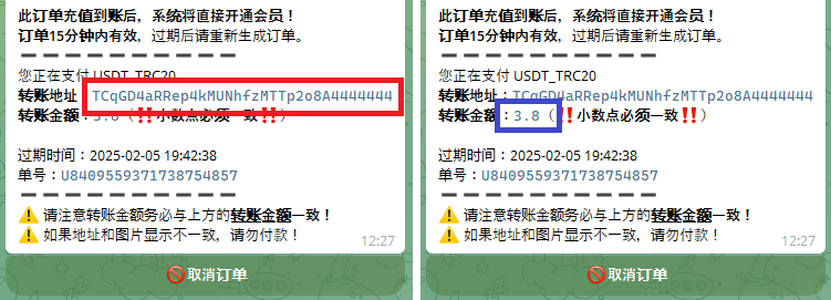 Nachdem du die Zahlung vorgenommen hast, wird die Zahlung innerhalb weniger Minuten (normalerweise nur wenige Sekunden) bestätigt, wenn alles korrekt gemacht wurde, und du erhältst eine Nachricht mit einem grünen Emoji ✅.