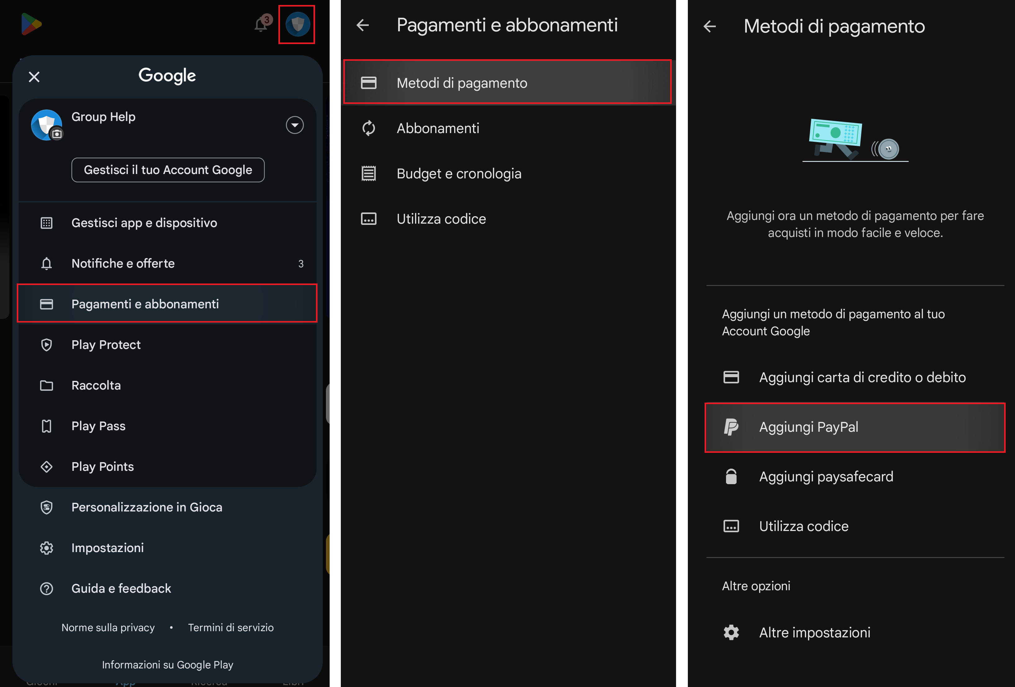 Per prima cosa è necessario aprire Google Play Store, poi: