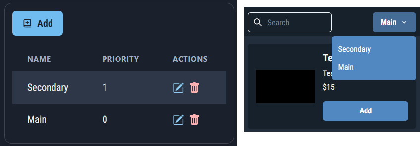 By default we find one called "Main", of which we can change the name and/or priority. The priority of a category corresponds to its level of importance compared to the others. In fact, the higher the priority, the sooner the category will appear in the selection menu.