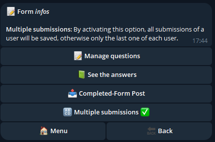 Going to the Forms section, you can see that our first form has already been created by the bot: