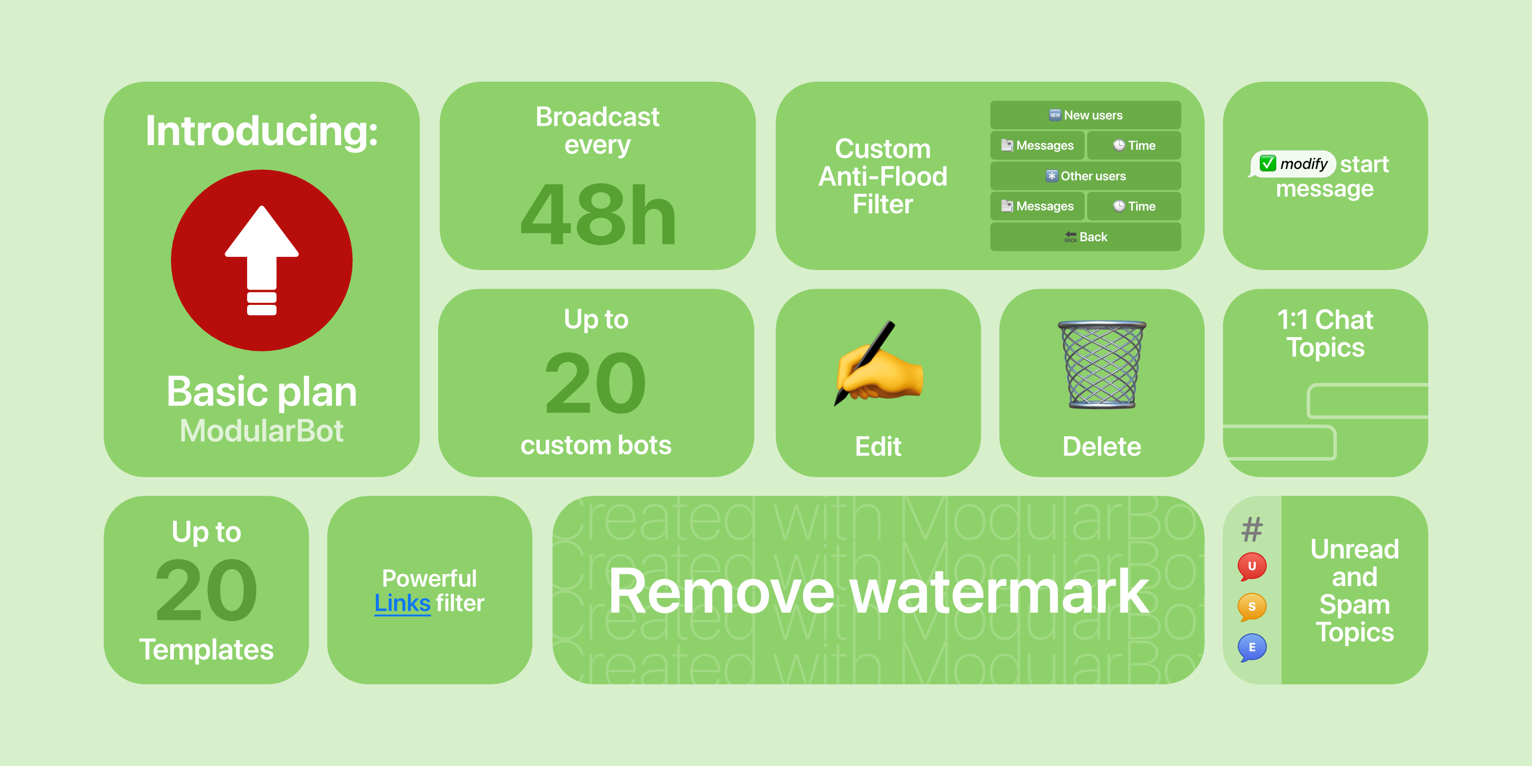 Removing bot watermark: your bots won't have the "Created with ModularBot" text