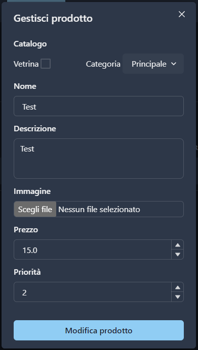Selanjutnya, masukkan nama, deskripsi, harga, dan prioritas produk kita. Prioritas adalah nilai yang menunjukkan tingkat kepentingan suatu produk dibandingkan dengan yang lain; semakin tinggi nilainya, semakin awal produk tersebut akan muncul di halaman katalognya.