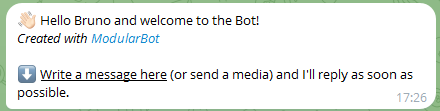 Dengan menggunakan versi gratis, tanda air ditampilkan dalam pesan awal bot: "Dibuat dengan ModularBot".