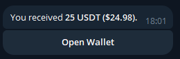 A questo punto saranno caricate sul nostro wallet 25 USDT utilizzabili per pagamenti di prova:
