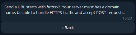 Se l'operazione è andata a buon fine dovreste trovarvi l'URL nel messaggio del bot.