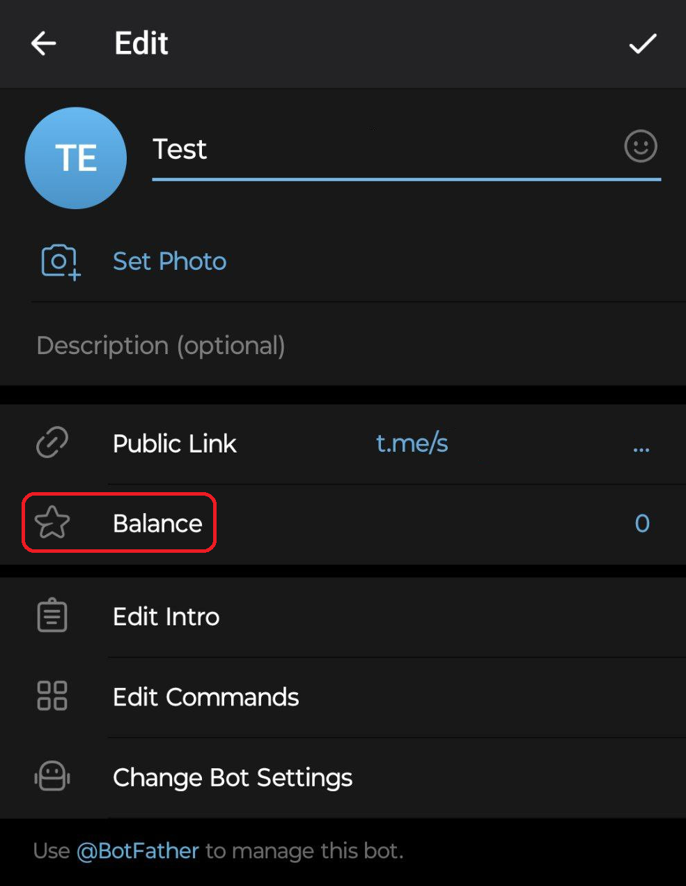 Per prima cosa vai nel profilo del tuo bot e premi semplicemente sull’icona della matita: