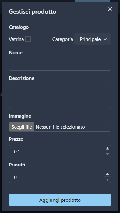 商店不可避免的起点是创建和管理自己的产品。事实上,在此页面中,可以创建、搜索、修改和删除我们希望通过自己的商店机器人销售的产品。