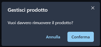 要删除一个产品,需要点击垃圾桶图标并确认选择: