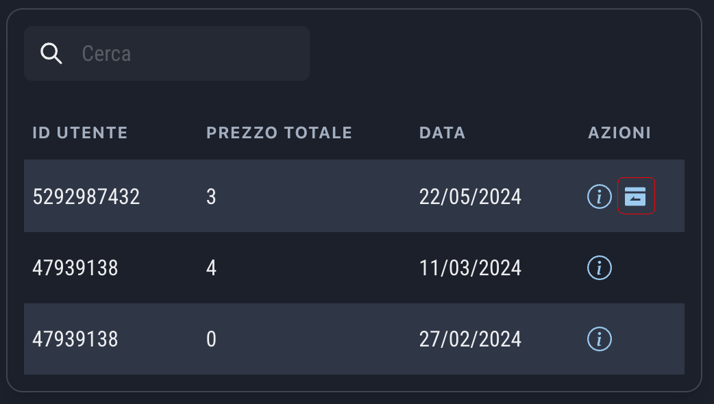 为此,只需在管理系统的订单页面中查找需要退款的付款,并点击下方图片中突出显示的图标: