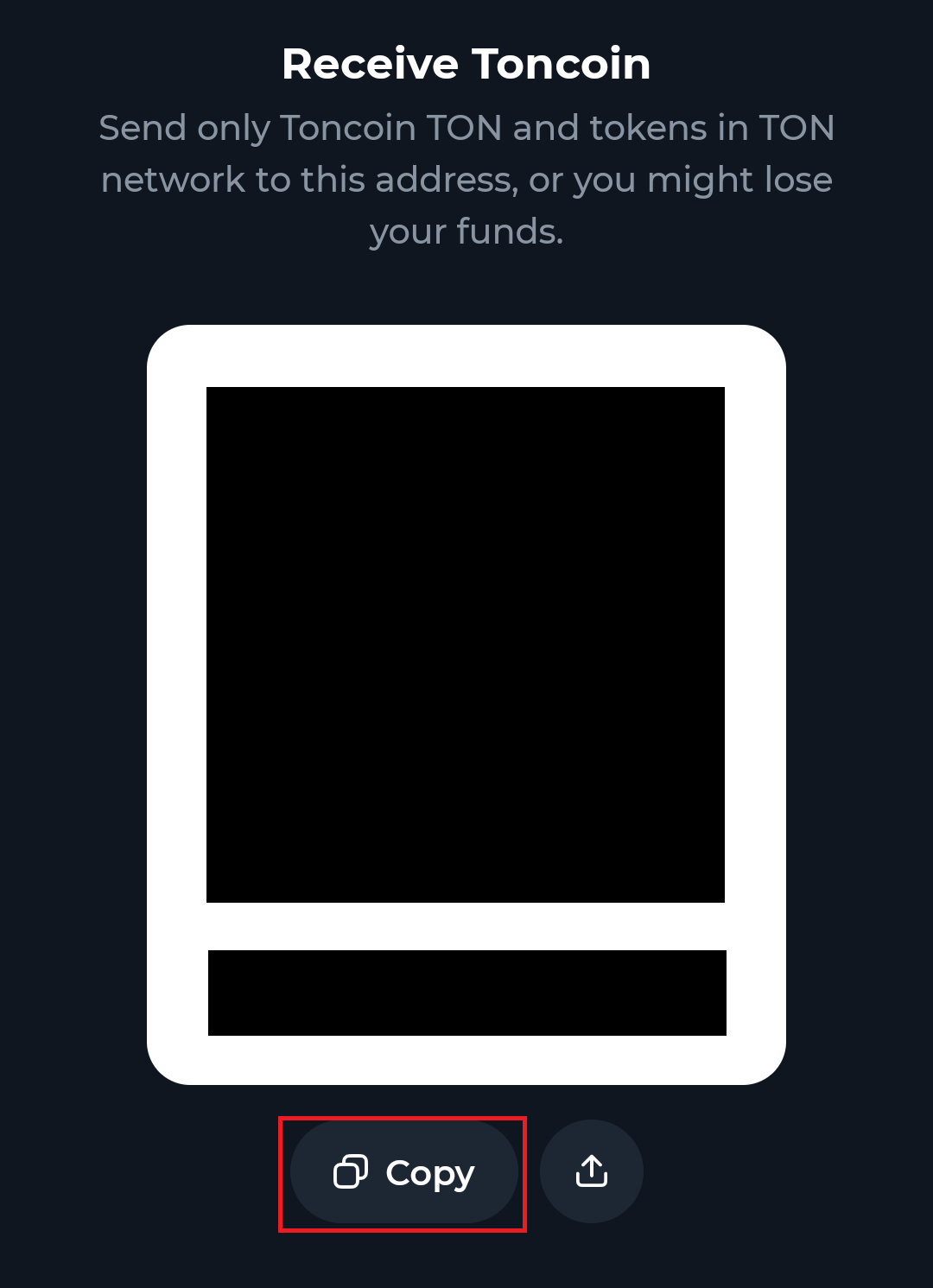 现在你已经获得了你的 TON 钱包地址,可以继续将你持有的货币转换为 TON。